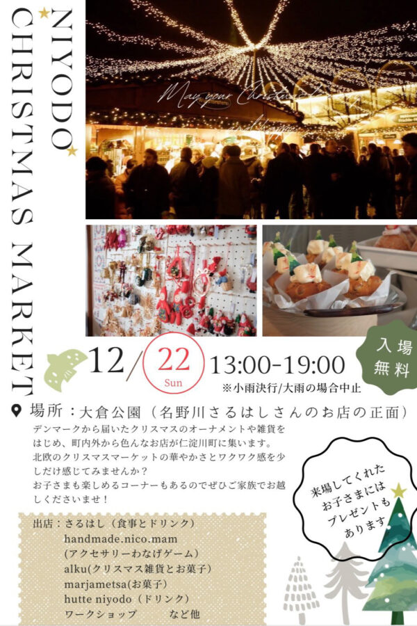 12月22日(日)はNIYODO CHRISTMAS MARKET 終了イベント X Facebook はてブ LINE Pinterest コピー 2024.12.172025.01.10 12月22日(日)は仁淀川町名野川で開催される NIYODO CHRISTMAS MARKETに出店します。 下のGOOGLE MAPで439と出ていますが、正しくは国道33号線です。 よろしくお願いします。